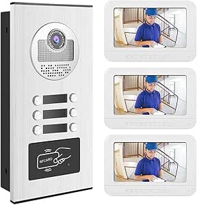 Amazon 7インチビデオドアベル 3アパートビデオインターホンドアベルドア電話rfidカメラ ホームセンターセキュリティシステム 白い Estink 受信機 レシーバー